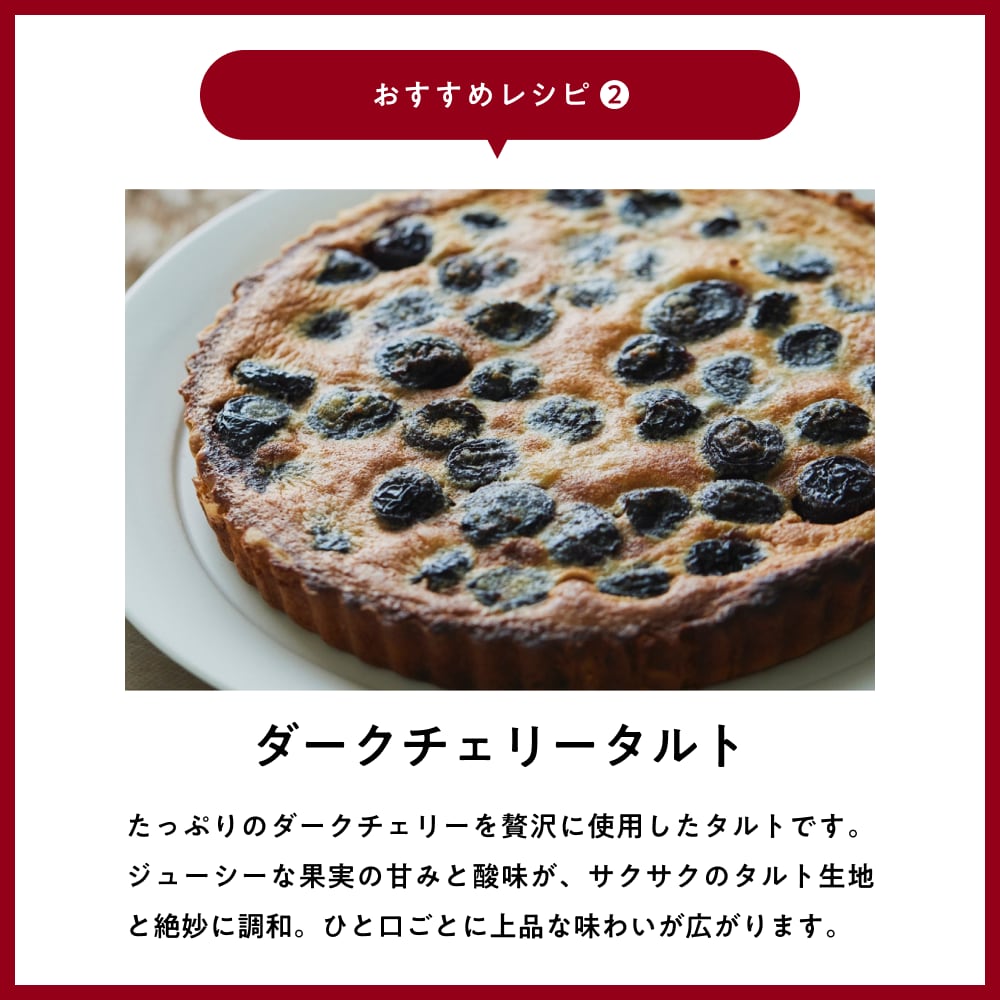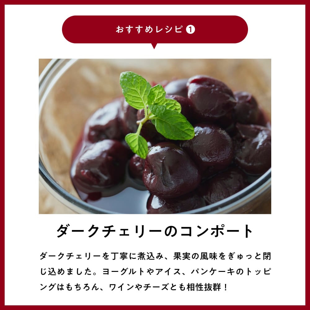 長年の積み重ねがあるからこそ、「これは本当においしい」と自信を持ってお届けできるダークチェリーです。