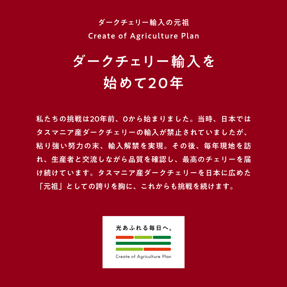 実は私たちの会社は、約20年前に日本で初めてオーストラリア・タスマニア産ダークチェリーの輸入を手がけた会社です。